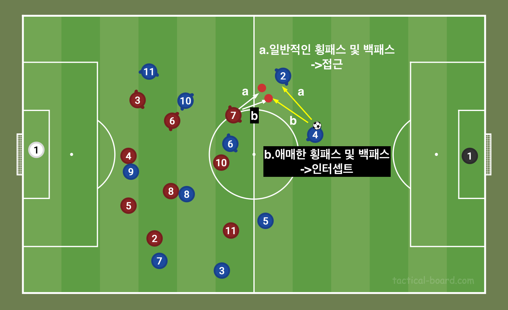 횡패스나 백패스가 부정확하거나 약하게 흘러갔을 때 트리거를 당길 수 있고