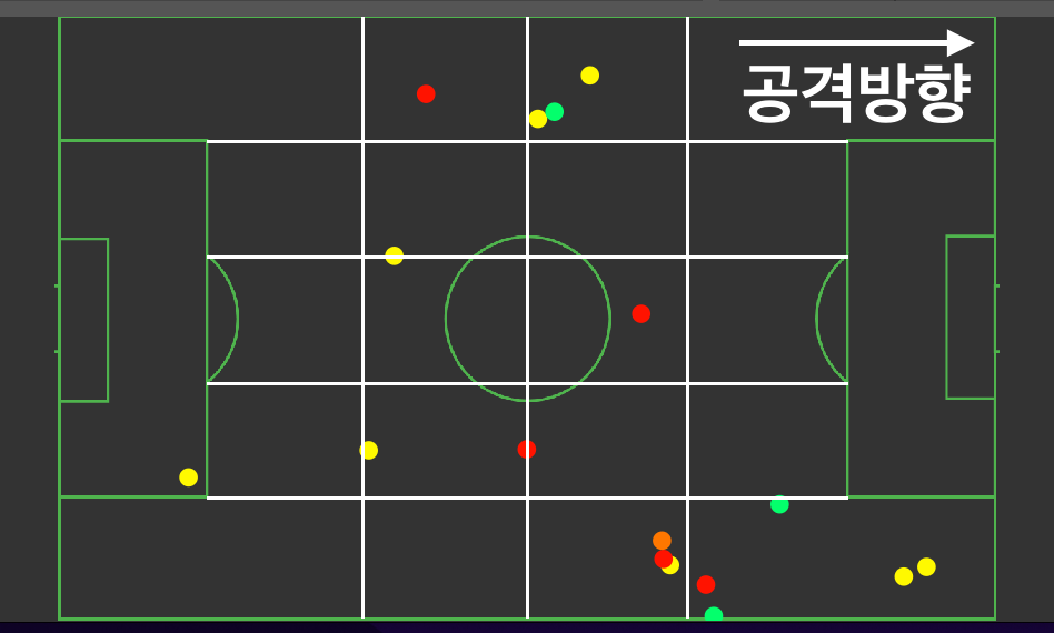 (주황색->역압박 성공 & 2차공격 성공 / 노란색->역압박 성공 but 2차공격 실패