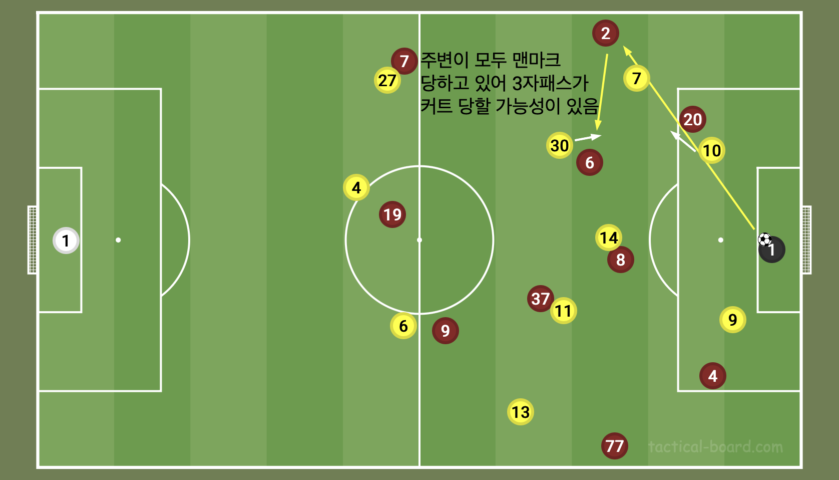 [2]모두가 마크 당하고 있을 때 풀백 향한 롱볼