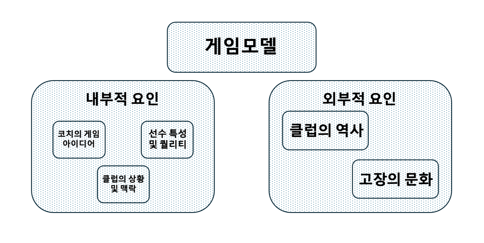 게임모델은 혼란스럽고 예측 불가능한 축구에서 예측 가능하도록 만드는 팀이 게임에서 달성하는 조직 수준이자 경기의 방향성이다. 게임 상황에서 우리가 결정하는 액션이 게임 속에서 발생되는 일관성과 빈도가 팀의 플레이 스타일을 결정한다. 게임 모델은 완벽한 것이 아니며 개인 및 팀적으로 계속 분석하고 개선해 나가는 하나의 '과정'이다. 게임 모델을 구성하는 요소로 게임 국면, 팀 규모, 게임 모델의 원칙이 있다.